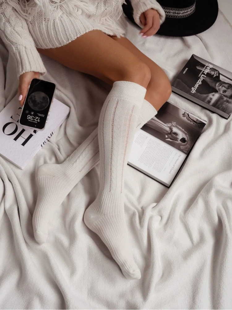Hrubšie bavlnené dámske podkolienky , vrkočový vzor. Ideálna voľba na zvýraznenie akéhokoľvek štýlu