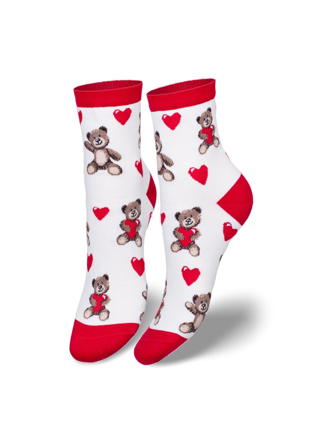 Dámske bavlnené vzorované ponožky - vzor medvedíky a srdiečka