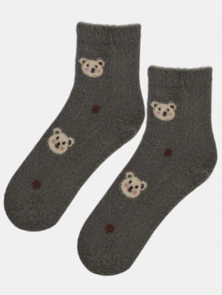 Dámske ponožky z mäkkej nadýchanej pleteniny, jemne chlpaté, veľmi príjemné na dotyk, vzor medvedík, netlačiaci lem
