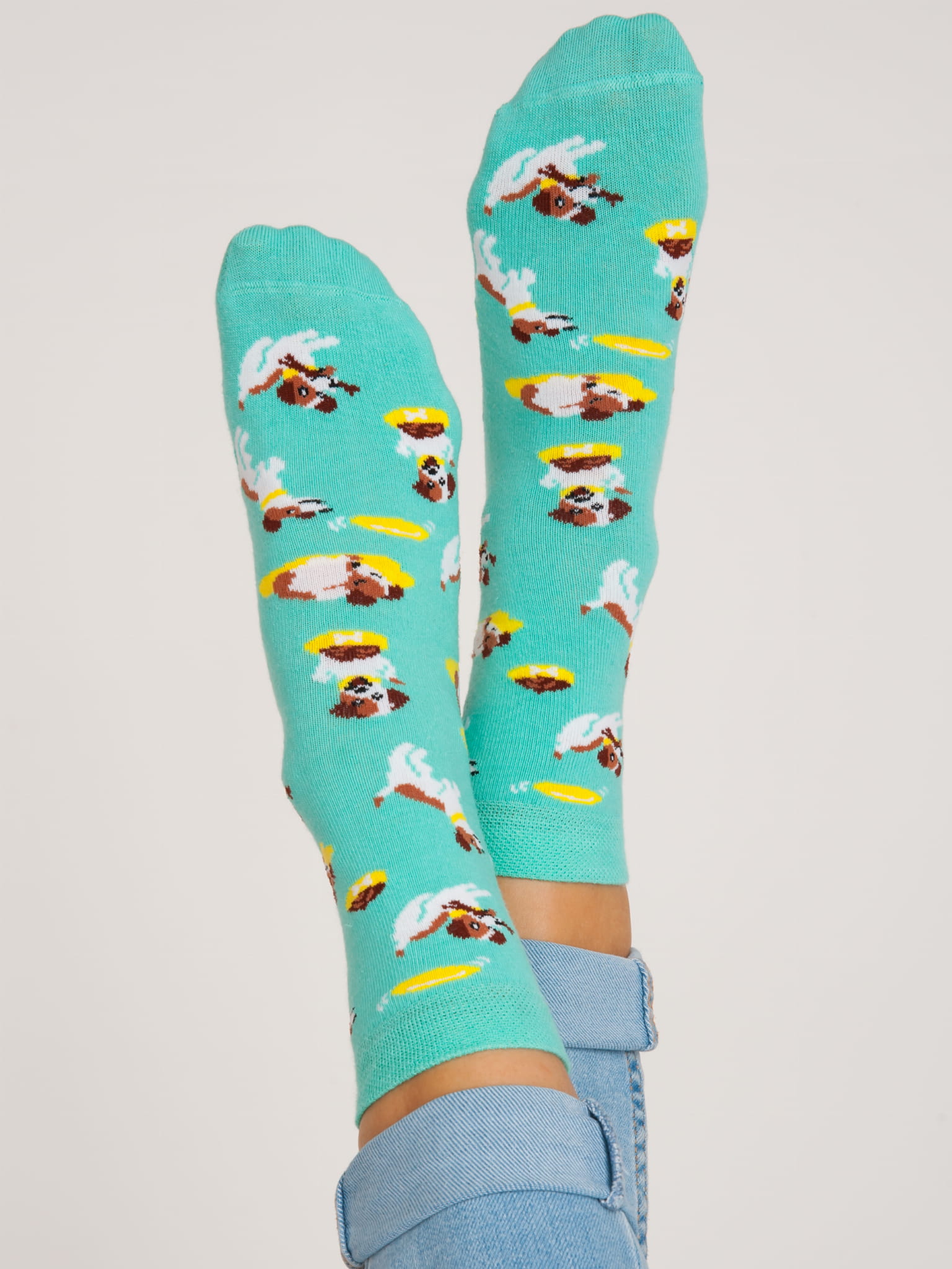 Detské bavlnené vzorované ponožky - vzor pes, plochý šev.