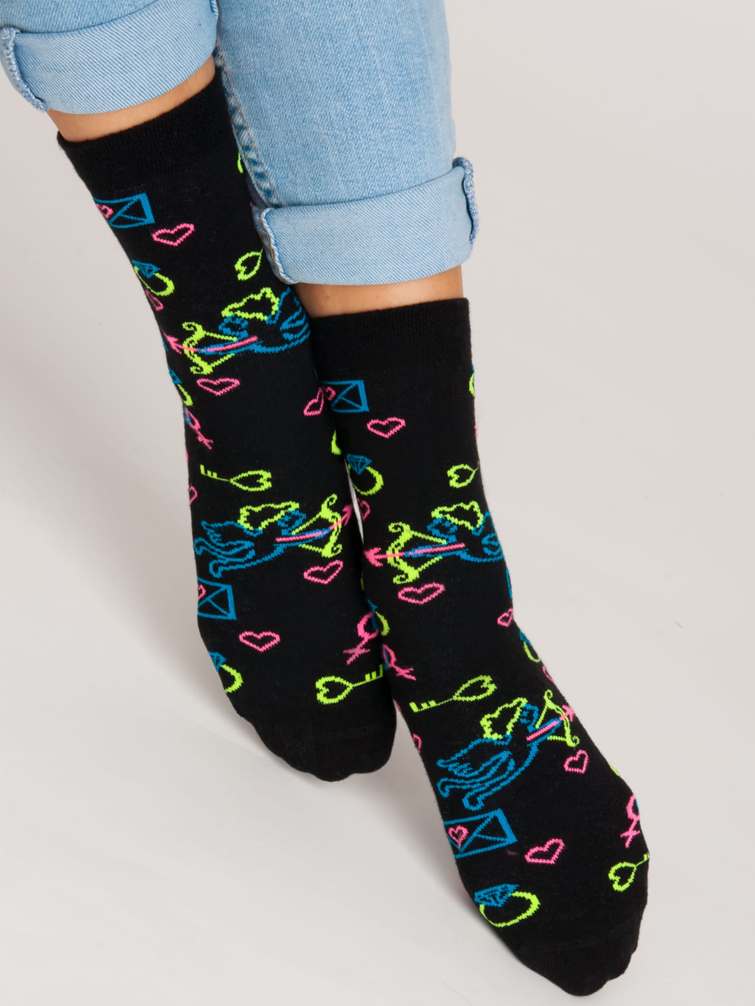 Detské bavlnené vzorované ponožky, plochý šev.