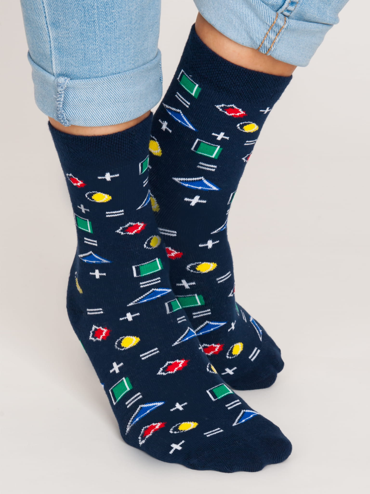 Detské bavlnené vzorované ponožky, plochý šev.