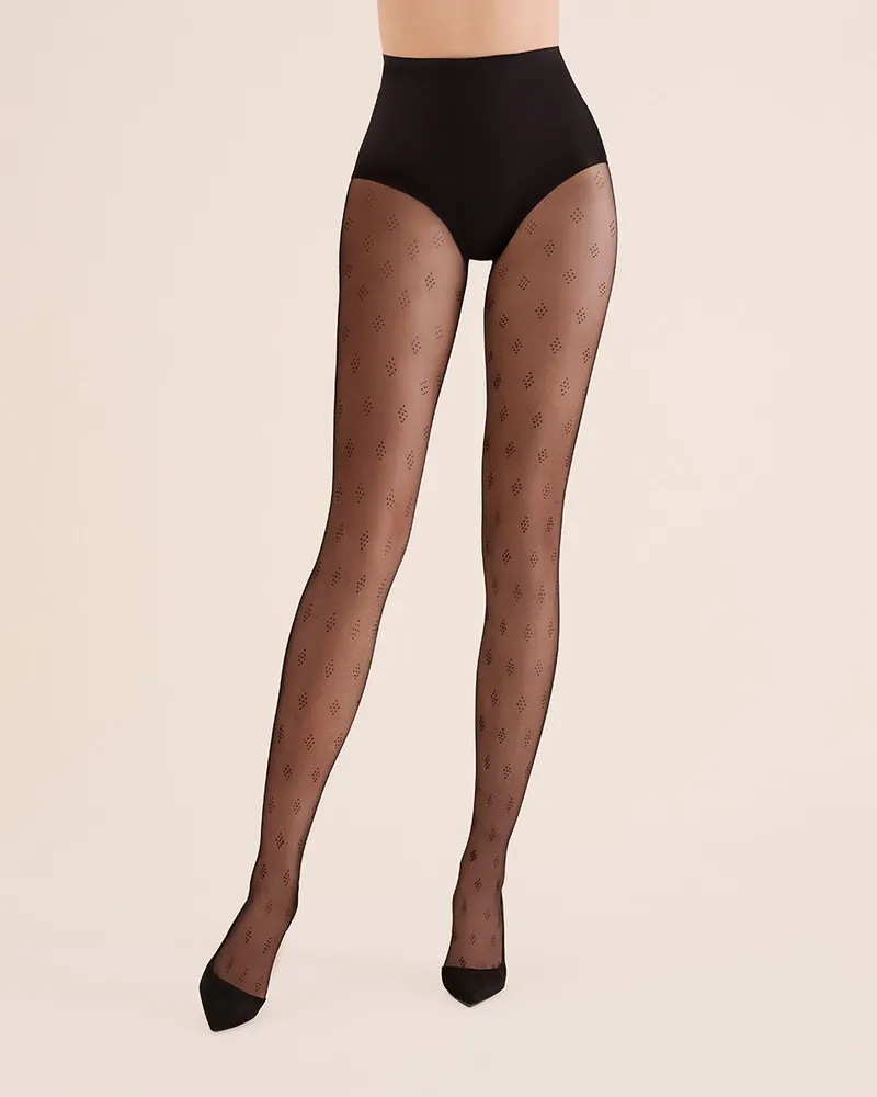 Dámske pančuchové nohavice s celoplošným vzorom tvorený bodkami, 20 den, bez zosilenej špičky Zloženie: 84% polyamid, 15% elastan, 1% bavlna celý popis