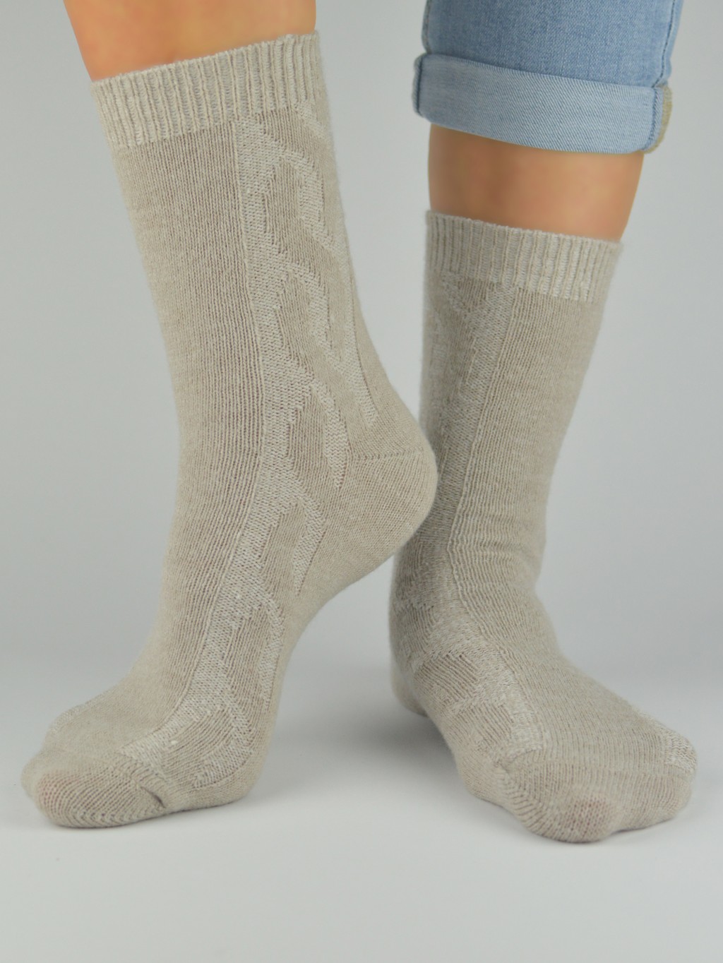 Dámske hrubšie ponožky s obsahom vlny, na boku vrkočový vzor, tieto teplé ponožky sú ideálne na chladné dni.