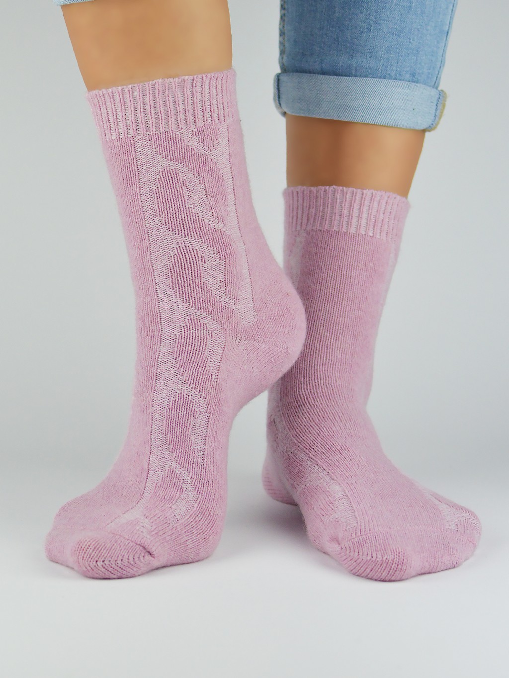 Dámske hrubšie ponožky s obsahom vlny, na boku vrkočový vzor, tieto teplé ponožky sú ideálne na chladné dni.