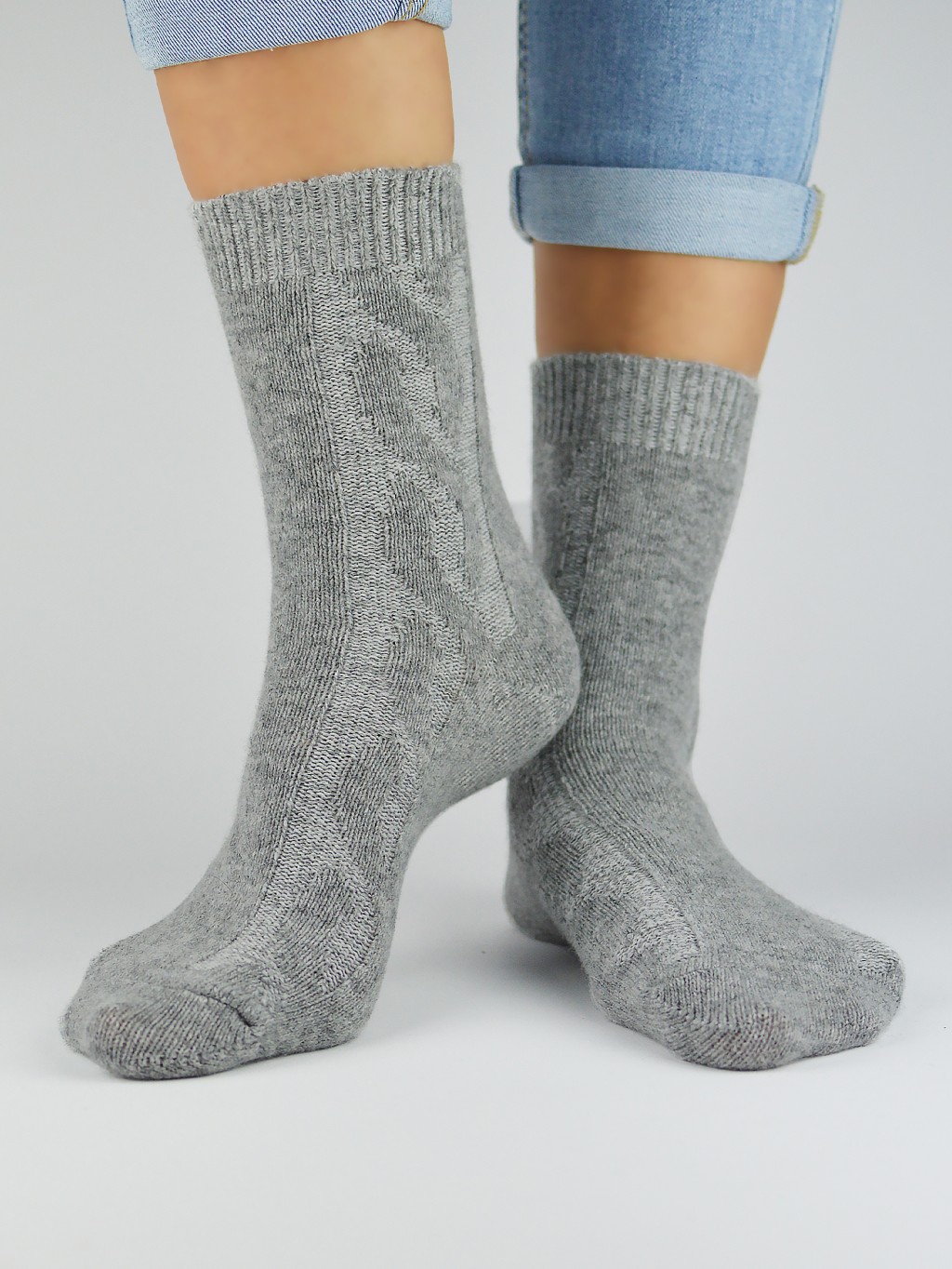 Dámske hrubšie ponožky s obsahom vlny, na boku vrkočový vzor, tieto teplé ponožky sú ideálne na chladné dni.