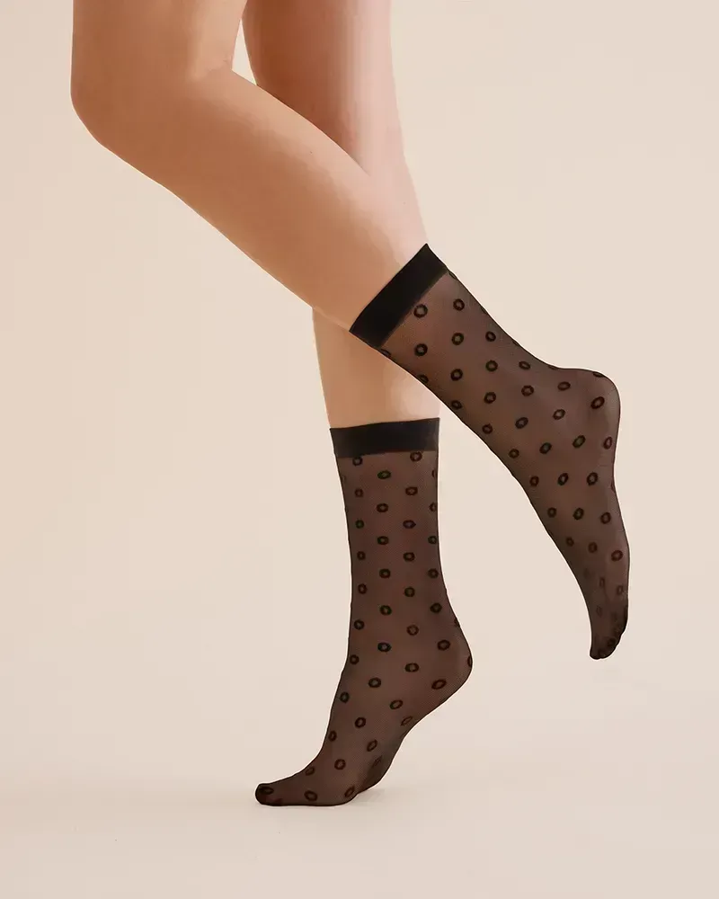 Dámske vzorované 20den silonkové ponožky - vzor malé kolieska, bez zosilenej špičky a päty.